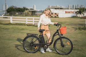 O DYU C6 está equipado com um motor de alta eficiência de 350 W e pode atingir uma velocidade máxima de 25 km/h para atender às necessidades do ciclismo urbano. Sua bateria de lítio de 36 V e 12,5 Ah oferece um alcance de até 30-37 milhas, facilitando o manuseio do C6, seja em um deslocamento diário ou em um passeio de fim de semana. O sistema de freio a disco dianteiro e traseiro do veículo garante efeito de frenagem em diversas condições climáticas e de estrada.