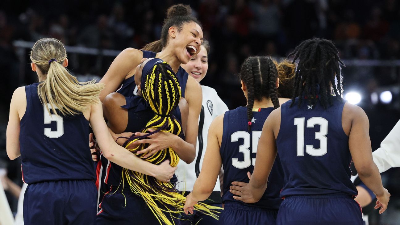 Chutes frouxos deram ao UConn uma vantagem de quatro pontos e selaram a vitória dos Huskies por 63-58, enviando-os para seu primeiro jogo no Campeonato Nacional desde 2016. Por quatro torneios consecutivos da NCAA, o UConn perdeu na Final Four. Mas neste quinto vôo – o último para um adulto que nunca jogou em um jogo do Campeonato Nacional – Evina WestbrookE a Olivia Nelson Ododa E Williams estava determinado a não perder.