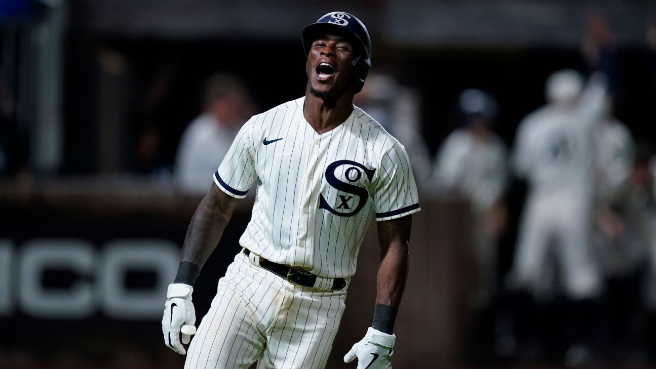 Jose abreu Acerte o primeiro motor no mar de pernas verdes e companheiros de equipe Eloy Jimenez E Sibi Zavala Ele e seus companheiros de banda seguiram para o White Sox nesta velha noite de verão em uma fazenda com os times em uniformes estilo 1919 para combinar.