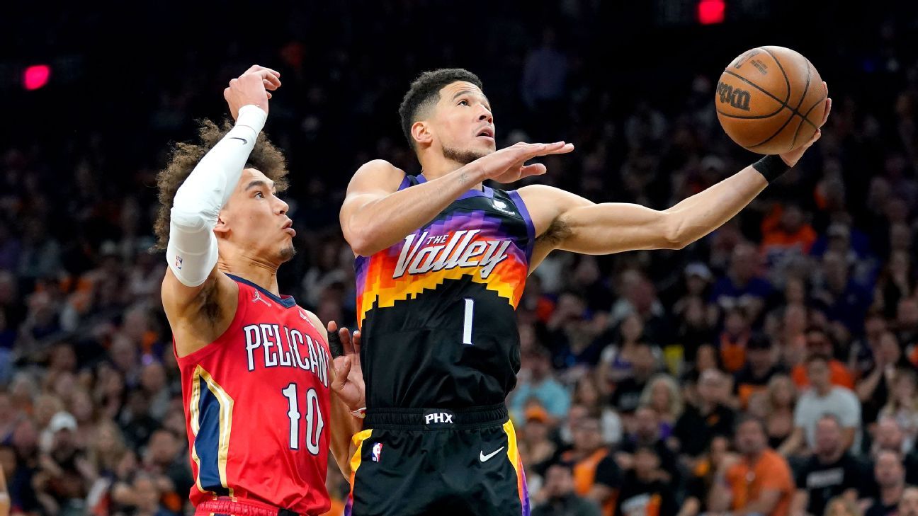 Qual é a probabilidade de haver pelo menos uma divisão entre The Suns contra os Pelicans no caminho para recuperar a vantagem de jogar em casa na série? E qual é o efeito de uma longa ausência enquanto Phoenix tenta ganhar seu primeiro campeonato na história da franquia?